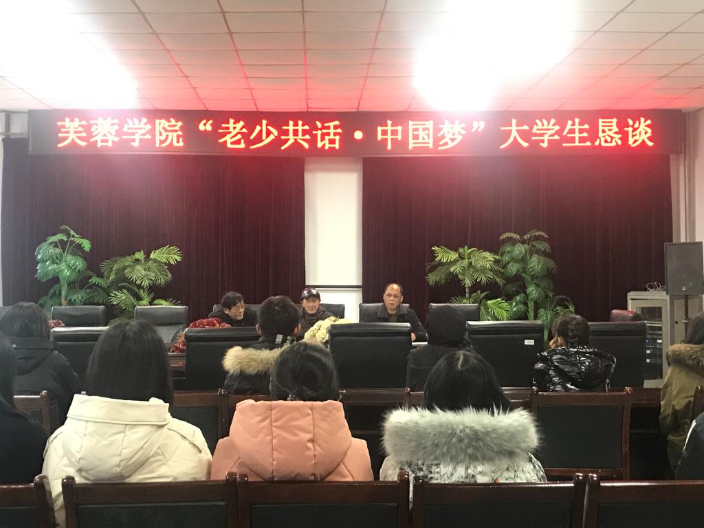 12月4日下午,寒风凛凛,学院二会议室却是热气腾腾,“老少共话·中国梦”大学生恳谈第五期活动正在这里进行。此次活动邀请到原高等专科学校副书记李冰成和原芙蓉学院工学系主任曾经梁作为“五老”专家代表到会指导,学院二十五名学生代表参加会议,恳谈会由学院党委副书记黄錾主持。