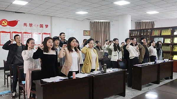 随后,全体辅导员在团委书记张翠的带领下庄严宣誓:拥护党的领导,献身教育事业,恪守职业规范, 提升专业素养,情系学生成长, 做好良师益友。为培养社会主义合格建设者和可靠接班人努力奋斗!