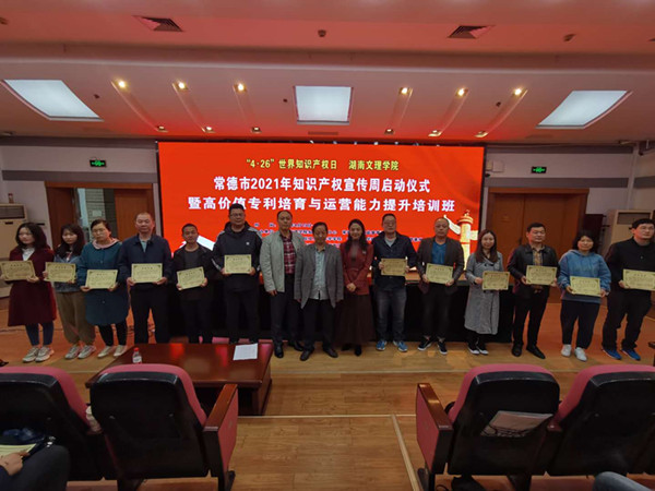 4月20日,湖南文理学院知识产权中心与常德市市场监督管理局联合举办的2021年常德市知识产权宣传周启动仪式暨高价值专利培育与运营能力提升培训活动在湖南文理学院图书馆多功能报告厅举行。市人民政府副市长杨成英出席活动,宣布宣传周启动和培训班开班。党委委员、副校长李红革出席活动并讲话。原省知识产权局副局长刘跃红,常德市市场监督管理局党组书记、局长董明辉,市场监督管理局党组副书记、副局长、市知识产权局局长曾遥,市创业协会会长、湖南柳枝集团董事长赵晋生,湖南文理学院知识产权中心首席专家、芙蓉学院文学与社会科学系系主任王翀等出席活动。活动还邀请了全市知识产权系统工作人员,高校、企业科研人员等200多人参加培训。活动由市人民政府副秘书长陈蔚民主持。