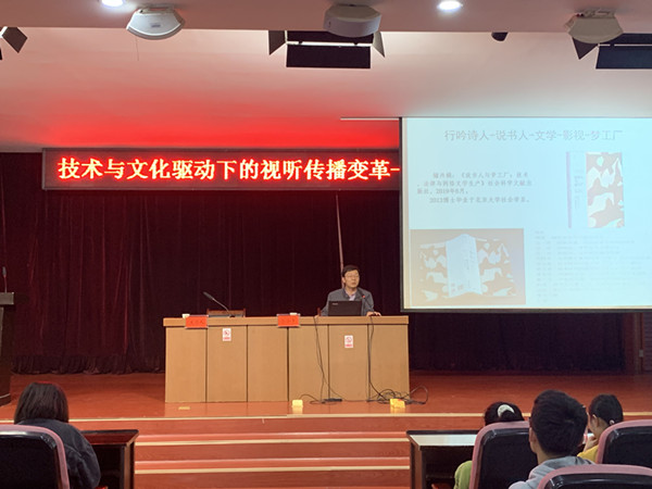 本网讯(文学与社会科学系 供稿)4月23日下午,华中科技大学新闻传播学博士生导师郭小平教授在学院多功能报告厅作了一场《技术与文化驱动下的视听传播变革》的学术讲座,我院二百余名师生聆听了此次讲座。讲座由文学与社会科学系书记佘飞鸿主持。