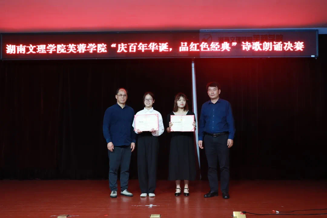 所有参赛队伍表演结束后,田宗城代表学院党委讲话。他对本次“庆祝百年华诞,品红色经典”朗诵比赛的成功举办表示祝贺,对选手们带来这样一场爱党爱国的诗词盛宴表示衷心感谢,并对各参赛代表队的演绎进行点评。他号召芙蓉学子们在中国共产党的领导下,踏着先辈的足迹,去完成先辈们未竟的事业,为了中华民族伟大的中国梦,用青春、热血捍卫我们脚下这片红色的土地。