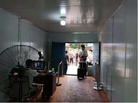 本次演练共分三个场景。返校学生首先要经过校门口处的自动红外测温通道进行体温测量,体温检测正常后沿着返校报到专用通道来到体育馆集中报到点。在集中报到点先对学生的行李进行消杀,然后严格执行返校学生的“三码”联查、根据要求提供48小时内核酸检测阴性证明等,符合要求的学生才能返回宿舍。在宿舍门口,对返校学生再次进行体温测量,学生体温正常才能进入宿舍。