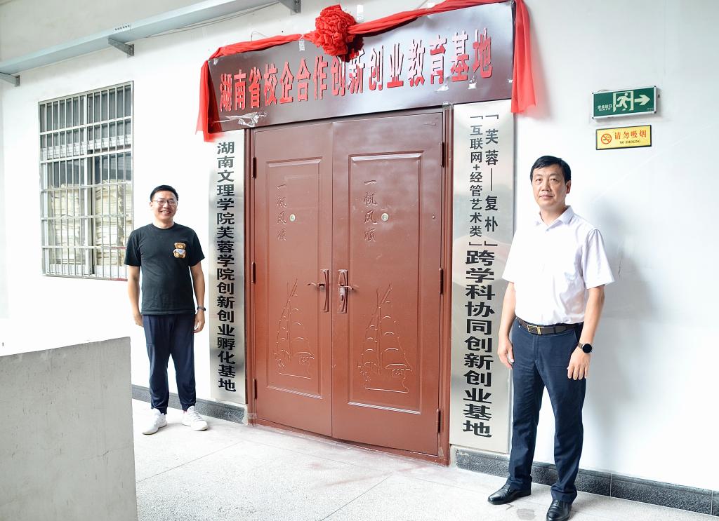 仪式上,刘宇文、张羽共同为“湖南文理学院芙蓉学院创新创业孵化基地”揭牌。