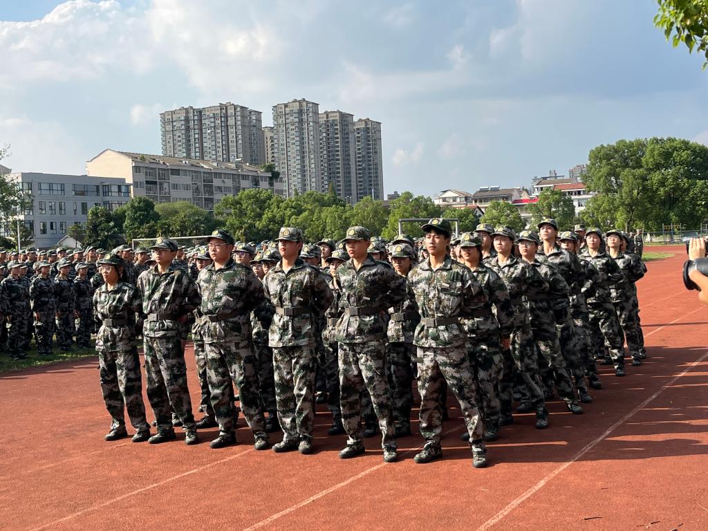 训练场上,2023级新生在教官的指挥下迅速整齐列队等待检查,他们军姿标准、挺拔如松,步伐铿锵有力、整齐划一,以最完美的状态接受学校领导的检查。