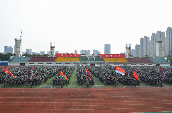 新生在田径场整齐列队湖南文理学院党委副书记、校长龙献忠教授讲话湖南文理学院党委副书记龚卫明主持典礼湖南文理学院党委委员、副校长刘春晖作军训动员10月9日上午8点3...