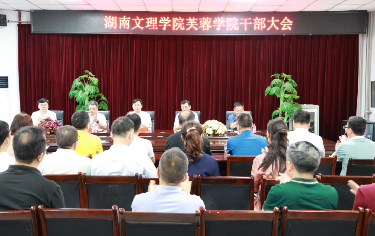 大会现场湖南文理学院党委书记龙献忠在会上讲话湖南文理学院党委副书记、校长刘宇文在会上讲话湖南文理学院党委委员、组织部部长郭杰荣宣读任免通知芙蓉学院党委书记孔...